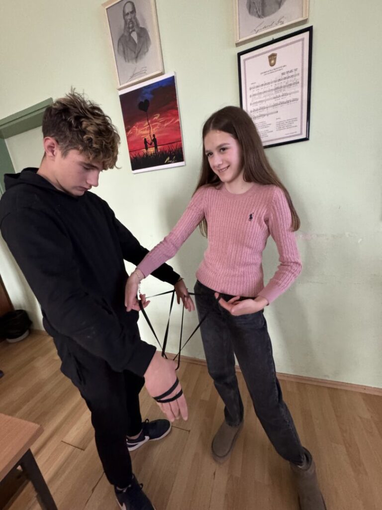 Nakon toga uslijedile su aktivnosti za učenike. Radili su vježbe pomoću gumice za jačanje mišića prstiju i šake. Igrali su tradicionalnu igru s konopom koju su djeca igrala generacijama. Osamdesetih godina nije postojalo dijete koje nije znalo igrati popularnu igricu Kolariću paniću (Zapetljanac, Na konca) za razvoj motorike, koncentracije i logičkog razmišljanja. Dok se igra, pjeva se brojalica: